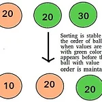 1. what stable sort ? [์ถ์ฒ : https://www.geeksforgeeks.org/stability-in-sorting-algorithms/ ] stable sort๋ ๋ฌด์์ผ๊น์? ์๋ ๊ณต๋ค์ ์ ๋ ฌ์ด ๋ ์ํ์ ๋๋ค. ์ ๋ ฌ๋๊ธฐ ์ ๊ณผ ๋น๊ตํ์ ๋ ํน์ง์ด ์์ต๋๋ค.๊ทธ๊ฒ์ ๊ณต์ ์ซ์๋ ์ ๋ ฌ๋์์ง๋ง, ๊ฐ์ ์ซ์๋ฅผ ๊ฐ์ง ๊ณต ์ฌ์ด์ ์๊น์ ๋ค์ด์จ ์์๋ฅผ ์ ์งํ๋ค๋ ๊ฒ์ ๋๋ค.์ด๊ฒ์ด ๋ฐ๋ก stable sort ์ ๊ฐ๋ ! ์ ๋๋ค. (unstable sort ๋? ๊ทธ ๋ฐ๋๊ฒ ์ฃ . ๊ทธ๋ฅ ๋ง ์์ ๋๋ค.) 2. why stable sort ? ๊ทธ๋ผ ์ด stable sort๊ฐ ์ ์ค์ํ ๊น์? ์ ) ๋ฐ์ดํฐ๊ฐ ๋ค์ด์จ ์์๋ ์ ์งํ๋ฉด์, ํน์ key ๊ฐ์ ๊ธฐ์ค์ผ๋ก sortingํ๊ณ ์ถ์ ๋ ๊ทธ๋ฅ ์๋ฌด์๊ฐ ์์ด so..
